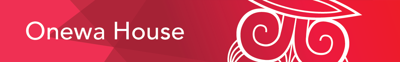 The house symbol depicts the chin moko (tattoo) of Hine-ahu-one.